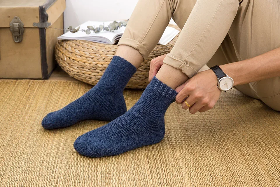 Winter Men's Merino Wool Socks Super Thick Warm High Quality Harajuku Retro Snow Casual Antifreeze Cashmere Socks Men 5Pair